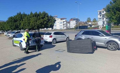 Çarpmanın şiddetiyle devrilen üç tekerlekli motorlu bisiklet, park halindeki 07 BJF 649 plakalı otomobile çarptı.