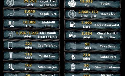 Aramalarda ele geçirilen diğer suç unsurları şöyle sıralandı: 29 adet ruhsatsız tabanca ve av tüfeği, 162 silah parçası, 752 mermi, 50 adet dinamit lokumu, 113 adet tarihi eser, 221 kaçak cep telefonu, 3 bin 954 cinsel içerikli ürün, 7 bin 490 litre kaçak akaryakıt, 210 adet sahte para ile 95 adet çek ve senet.