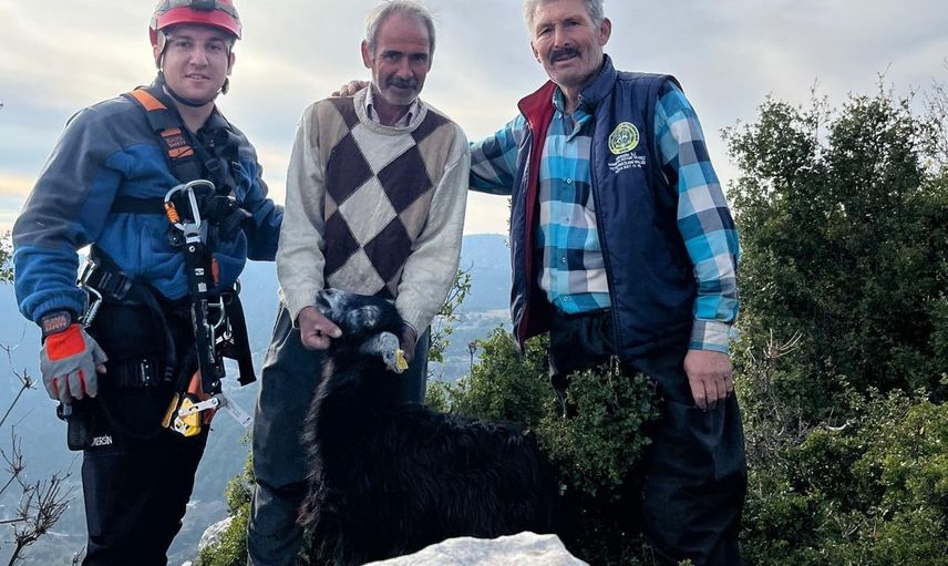 Ekipler, hayvan sahibinin rehberliğinde patika yoldan yaklaşık 50 dakika süren yürüyüşün ardından keçilerin bulunduğu noktaya ulaştı. Ağaç ve kayalıkları kullanarak istasyon kuran itfaiye ekibi, kontrollü şekilde yaklaşık 25-30 metre aşağı indi.