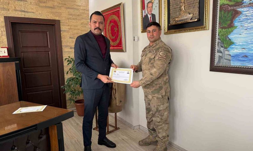 Van’ın Muradiye Kaymakamı Furkan Taha Türkmenoğlu tarafından jandarma personeline başarı belgesi verildi.