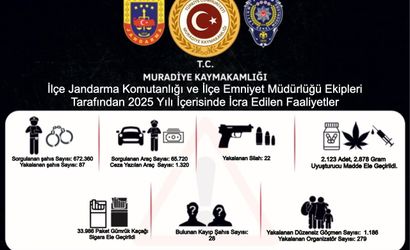 Van’ın Muradiye ilçesinde 2025 yılı içerisinde jandarma ve polis ekiplerince yürütülen çalışmaların verileri paylaşıldı.