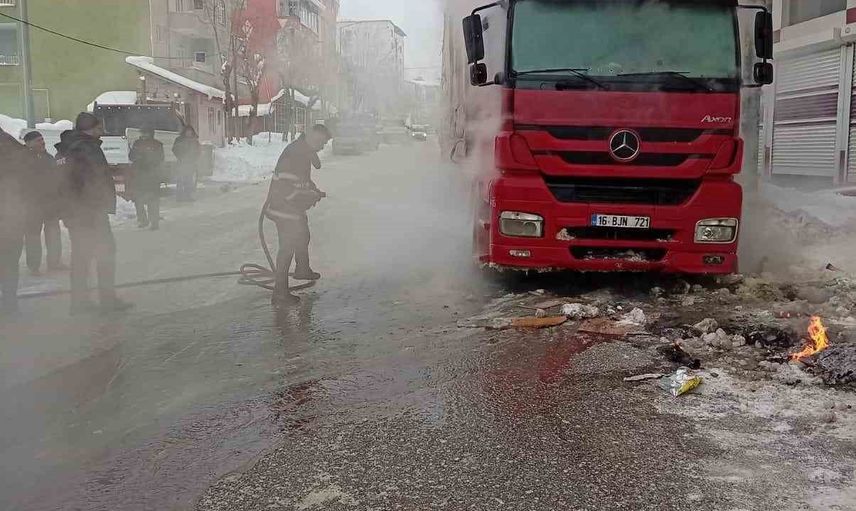 Muş’un 15 Temmuz Milli İrade Mahallesi'nde park halinde bulunan bir tırın motor kısmında, sabah saatlerinde henüz belirlenemeyen bir nedenle yangın çıktı. Olayda araç plakası 16 BJN 721 olarak kaydedildi.