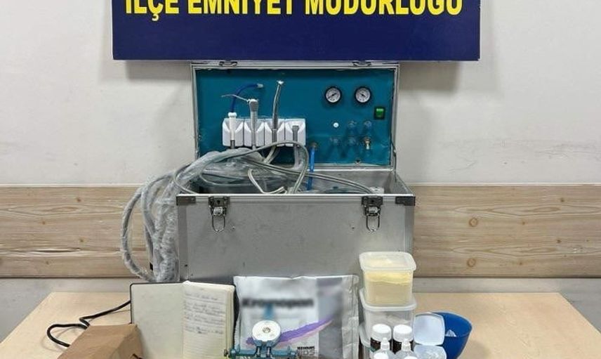 Alınan adli arama kararına istinaden 19 Ocak günü saat 16.30 sıralarında adrese operasyon düzenlendi. Yapılan aramada diş kompresörü, diş kalıpları, takma diş, diş aynaları, yapıştırıcılar, ölçü malzemeleri, müşteri defteri ve dişçilikte kullanılan çok sayıda ekipman ele geçirildi.