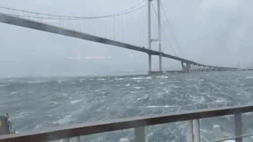 Yalova'dan 11.20'de Topçular'dan ayrılan Negmar'a ait arabalı feribot, fırtına nedeniyle Eskihisar'a yanaşamayarak Kocaeli istikametinde güvenli bölgede bekliyor.