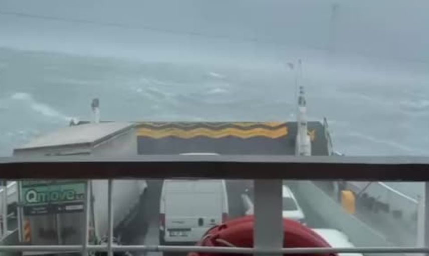 Yalova'da Topçular'dan 11.20'de Eskihisar'a hareket eden Negmar'a ait arabalı feribot, fırtınaya yakalandı.