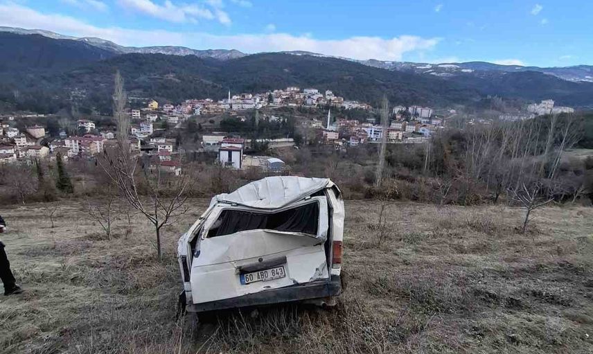 Niksar’da şarampole devrilen minibüs hurdaya döndü: 1 yaralı