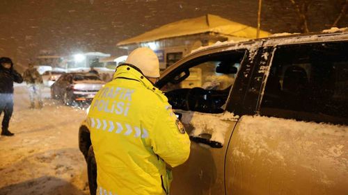 Erzurum Emniyet Müdürü Onur Karaburun, yoğun kar altında Karskapı Uygulama Noktası’nda gece denetimi yaptı; personele teşekkür etti, çalışmaların süreceğini vurguladı.