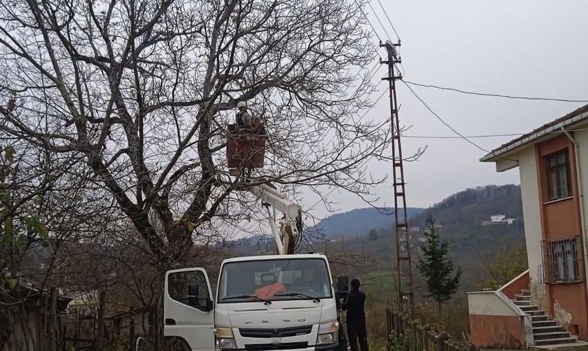 Ordu'nun Kumru ilçesinde elektrik tellerine temas eden ağaç dalları planlı şekilde kesildi