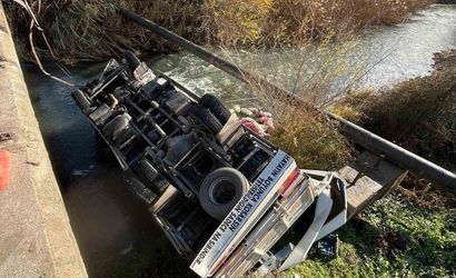 Osmaniye'de turp yüklü kamyon dereye devrildi