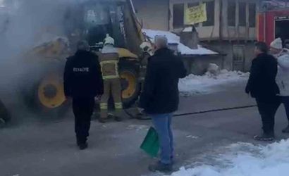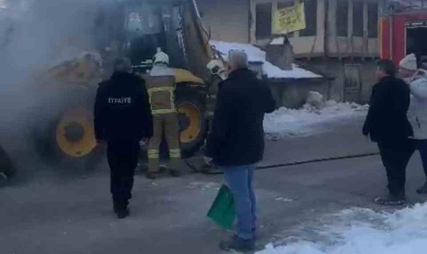 Safranbolu'da iş makinesinde yangın: Vatandaşlar karla müdahale etti