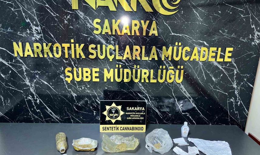 Yapılan aramalarda 95 gram sentetik cannabinoid maddesi, 31 gram aseton (uyuşturucu yapımında kullanıldığı değerlendirilen), 5 parça uyuşturucu paketlemesinde kullanıldığı değerlendirilen materyal ve 1 adet uyuşturucu yapımında kullanıldığı değerlendirilen pet şişe ele geçirildi.