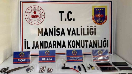 Manisa'nın Salihli ilçesinde jandarma ekiplerinin ikamet baskınında 23 uyuşturucu hap, 7 aparat, muşta, bıçak ve 4 telefon ele geçirildi; G.Y. hakkında işlem başlatıldı.