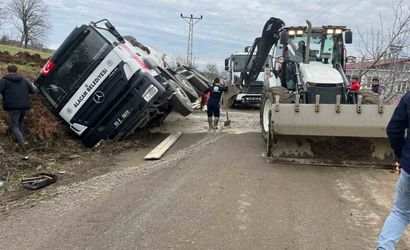 Kazada yaralanan olmadığı öğrenilirken, devrilen mikserin bulunduğu yerden çıkarılması için ekipler tarafından çalışma başlatıldı.