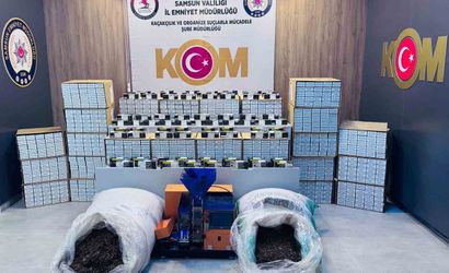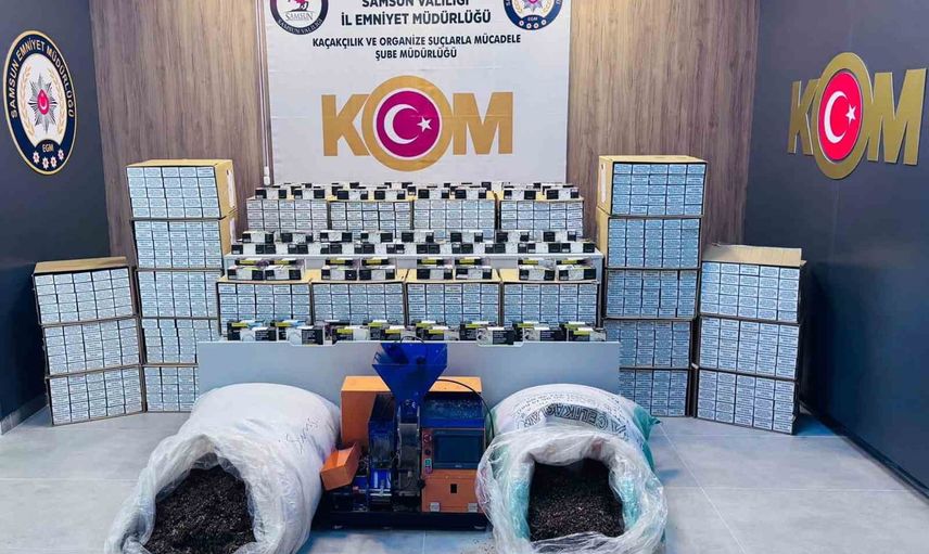 ÇARŞAMBA İLÇESİNDE POLİS EKİPLERİNCE DÜZENLENEN KAÇAKÇILIK OPERASYONUNDA 280 BİN ADET MAKARON, 40 BİN ADET MAKARON SİGARA, 130 KİLO KAÇAK TÜTÜN VE SİGARA SARMA MAKİNESİ ELE GEÇİRİLDİ.