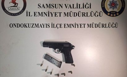 Olayın ardından R.Ç.'ye ait ikamette yapılan aramada ele geçirilenler arasında 1 adet 9 mm çapında tabanca, 1 adet şarjör, 7 adet 9 mm fişek ile 5607 sayılı Kanun kapsamında 1 adet elektronik sigara, 10 adet likit, 2 adet şişe tiner ve şırınga bulundu.