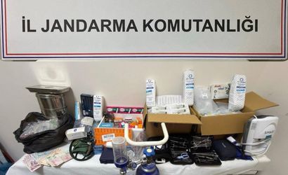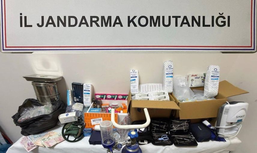 Jandarma ve Sağlık Müdürlüğü ekipleri adreste tıbbi malzeme ele geçirdi