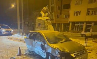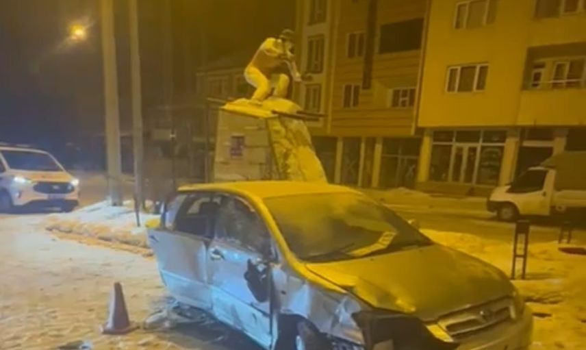 Kaza, ilçede saat 04.00 sularında gerçekleşti. Seyir halindeki otomobilin sürücüsünün direksiyon hakimiyetini kaybetmesi sonucu araç yoldan çıkarak ilçe girişinde bulunan kayakçı heykeline çarptı.