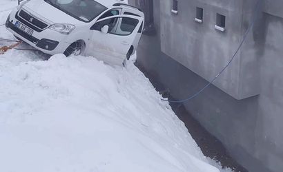 Siirt'te Buzlanma: Hafif Ticari Araç Evin Duvarında Asılı Kaldı