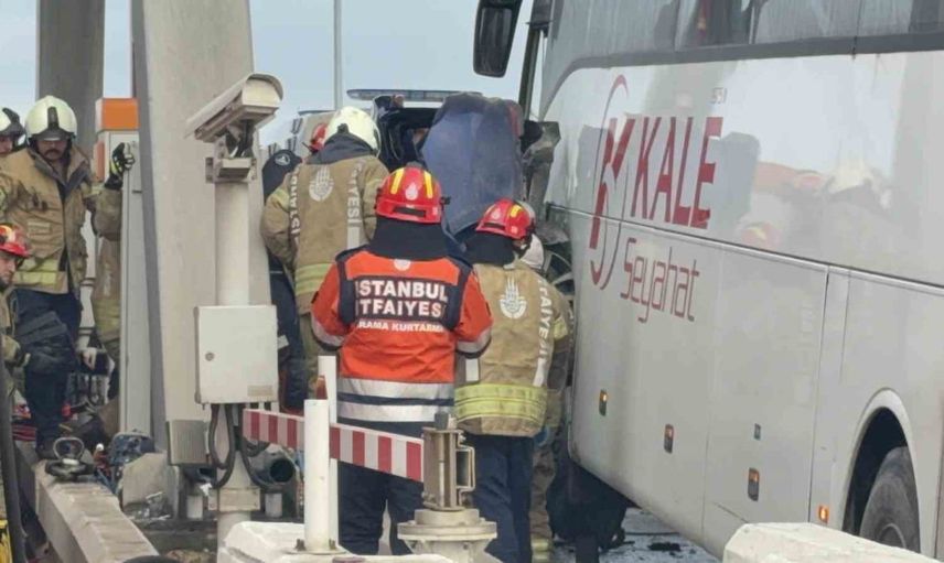 Edinilen bilgiye göre kaza saat 16.00 sıralarında meydana geldi. Tekirdağ’dan İstanbul’a giden Kale seyahate ait yolcu otobüsü ile otomobilin bilinmeyen bir nedenle çarpışması sonucu her iki araç da gişede sıkıştı.