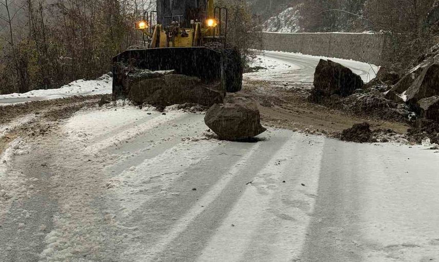 İhbarın ardından bölgeye hızla sevk edilen İlçe Özel İdaresi ekipleri, iş makineleriyle çalışma başlattı. Ekiplerin müdahalesiyle yola düşen toprak ve kaya parçaları temizlenerek yol yeniden güvenli şekilde ulaşıma açıldı.