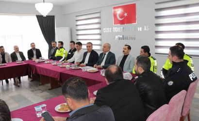 Şırnak İl Emniyet Müdürü Volkan Sazak ile Cizre İlçe Emniyet Müdürü Emre Tufan, mahalle muhtarlarıyla Cizre Öğretmen Evi'nde düzenlenen toplantıda ilçenin güvenlik ve asayişini masaya yatırdı.