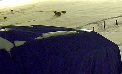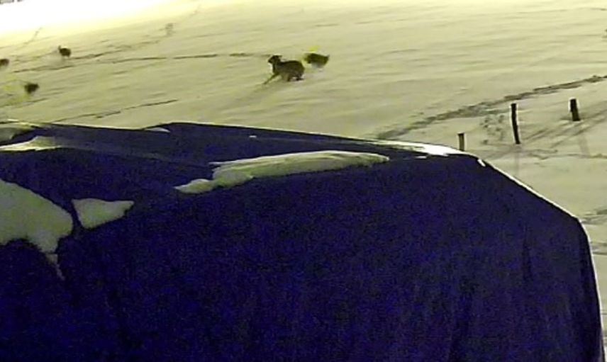 SİVAS’TA AÇ KALAN 6 KURT, BİR ÇİFTLİKTEKİ KÖPEĞE SALDIRDI. KURTLARIN SALDIRDIĞI KÖPEKTEN GERİYE POSTU KALDI. KURTLARIN KÖPEĞE SALDIRDIĞI ANLAR, GÜVENLİK KAMERASINA YANSIDI.