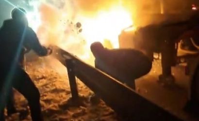 SİVAS’TA BİR TIRIN YAKIT DEPOSUNDA BAŞLAYAN YANGIN PANİĞE NEDEN OLDU. ALEVLERE MÜDAHALE ETMEK İSTEYEN VATANDAŞLAR, ELLERİYLE KAR ATARAK SÖNDÜRMEYE ÇALIŞTI.