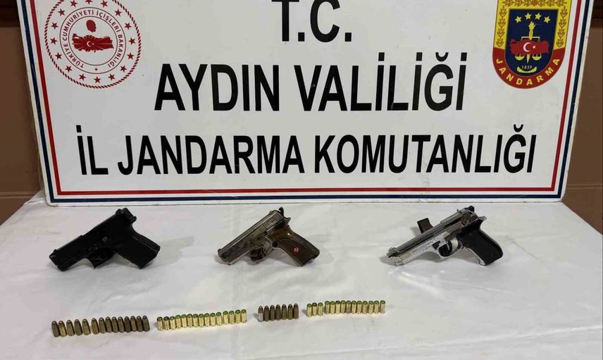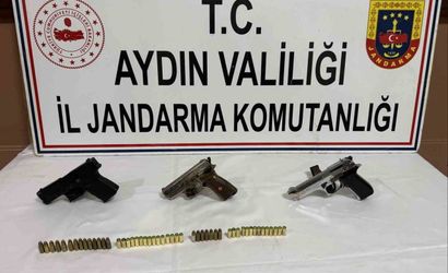 Şüphelinin ikametinde yapılan aramada 3 adet tabanca, 3 adet tabancaya ait şarjör, 15 adet fişek, 29 adet dolu kurusıkı fişek ile çalıntı olduğu belirlenen 1 adet buzağı ele geçirildi.