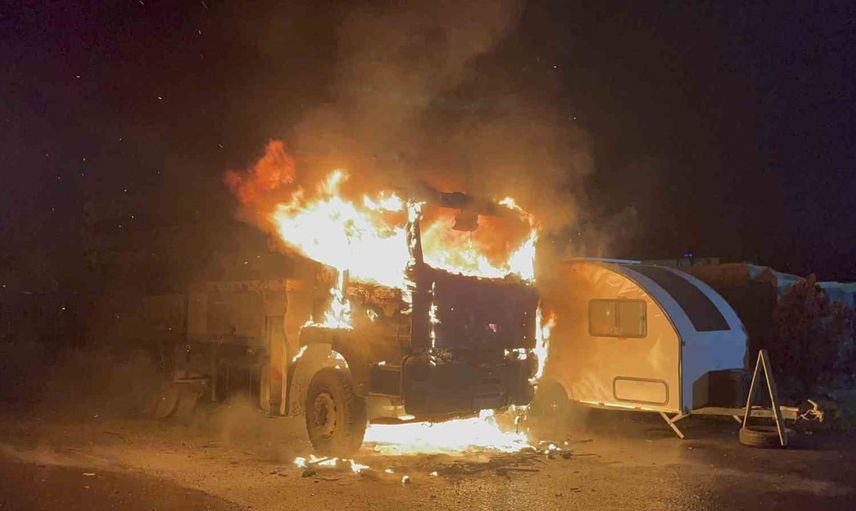 Yangın esnasında beton pompasının yanında bulunan bir karavan da maddi zarar gördü.