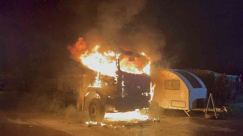 Çorlu'da park halindeki beton pompası kabininden çıkan yangında alev aldı; itfaiye müdahalesiyle söndürüldü, araç hurdaya döndü, karavanda hasar oluştu.
