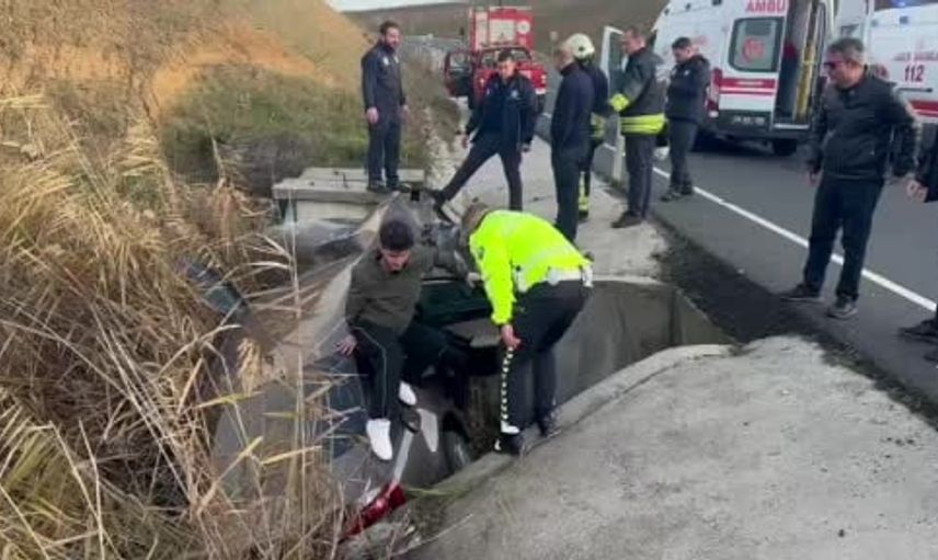 Tekirdağ Muratlı'da Su Kanalına Düşen Otomobilde 2 Kişi Yaralandı