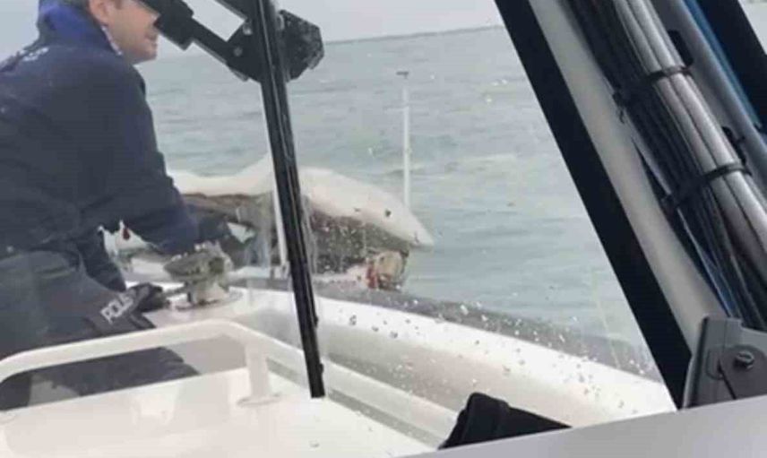 Polis ekipleri sürüklenen tekneyi güvenli alana çekti