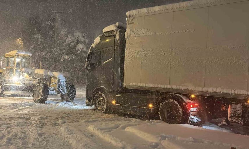 Sürücüler, bölgede yaşanan aksamalarda zor anlar yaşarken yetkililer ulaşımın normale dönmesi için çalışmaların sürdüğünü bildirdi. Kış koşulları nedeniyle kış lastiği veya zincir takılmaması ulaşımın aksamasında etkili oldu.