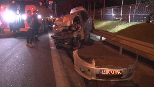 TEM Otoyolu Esenler'de Otomobil Kamyonete Çarptı: Bariyerlere Çıktı, 2 Yaralı