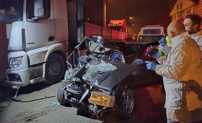 Otomobil içinden olay yeri inceleme ekiplerinin alkol şişelerini delil torbasına koyması dikkat çekti. Demir yığınına dönen araç, çekici yardımıyla tırın dorsesinin altından çıkartılarak otoparka çekildi. Kazayla ilgili inceleme başlatıldı.