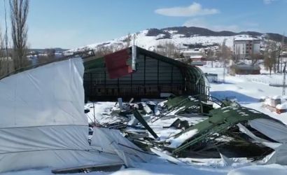 TOKAT’IN BAŞÇİFTLİK İLÇE MERKEZİNDE BULUNAN KAPALI HALI SAHANIN ÇATISI, ETKİLİ OLAN YOĞUN KAR YAĞIŞI NEDENİYLE ÇÖKTÜ.