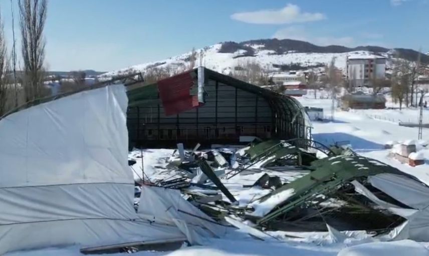 Tokat’ın Başçiftlik ilçe merkezinde bulunan kapalı halı sahanın çatısı, etkili olan yoğun kar yağışı nedeniyle çöktü.