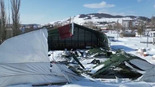 Tokat'ın Başçiftlik ilçesindeki kapalı halı sahanın çatısı yoğun kar yükü nedeniyle çöktü; can kaybı olmadı, saha kullanılamaz hale geldi.