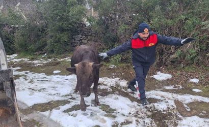 Olay yerine sevk edilen itfaiye ekipleri, kısa sürede bölgeye ulaşarak ineğin zarar görmeden çıkarılması için çalışma başlattı.