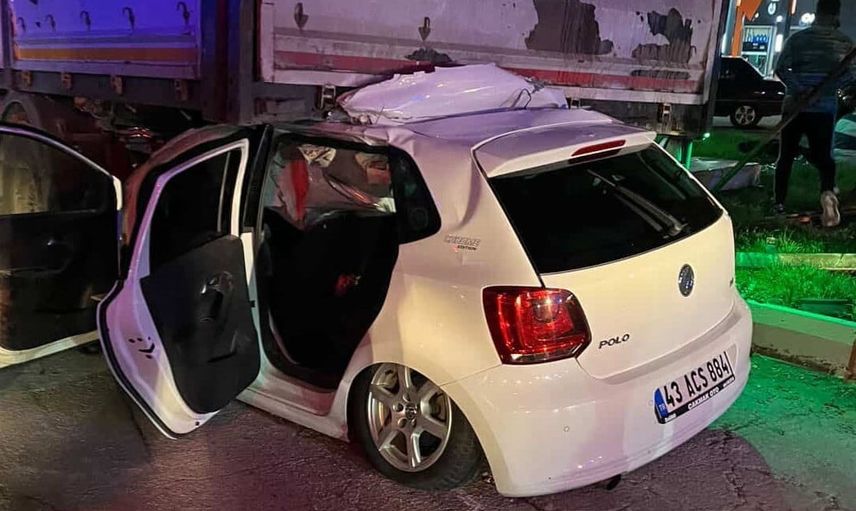 43 ACS 884 plakalı otomobiliyle Turgutlu istikametine seyreden Samet T. (20), yola çıkan bir yayaya çarptı. Çarpmanın ardından araç, yolun sağında park halinde bulunan İsa S. (38)'a ait 35 BMT 052 plakalı tıra çarparak durabildi.