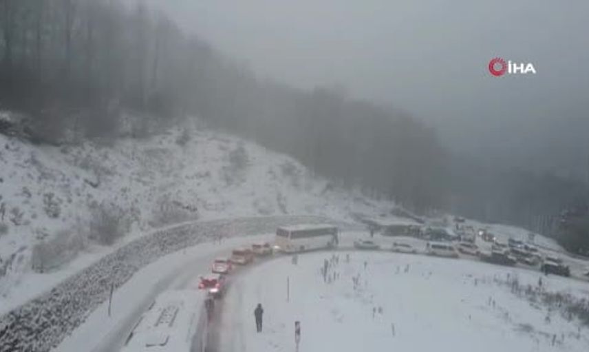 Hafta sonu yoğunluğu ve günübirlik ziyaretçilerin katılımıyla artan hareketlilik, akşam saatlerinde geri dönüşte sorunlara yol açtı. Zirveden şehir merkezine uzanan yolda, kar lastiği ve zinciri olmayan sürücüler nedeniyle trafik kilitlendi.