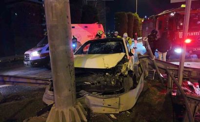 Ümraniye-Şile yolunda gece saatlerinde meydana gelen kazada, makas attığı iddia edilen otomobil sürücüsü direksiyon hakimiyetini kaybetti. 34 HIB 578 plakalı araç, aynı yönde seyreden ticari taksiye çarptıktan sonra savrularak bariyerlere ok gibi saplandı.
