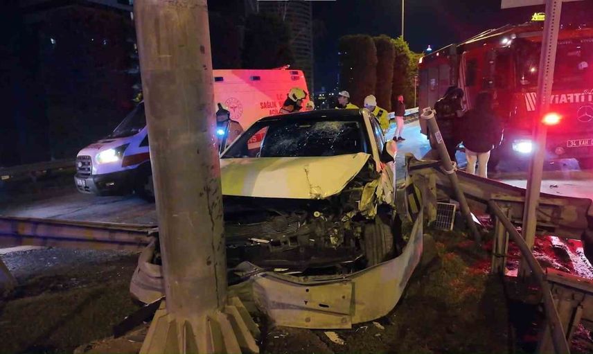 Ümraniye'de Alkollü Sürücü Bariyerlere Saplandı: 2 Yaralı