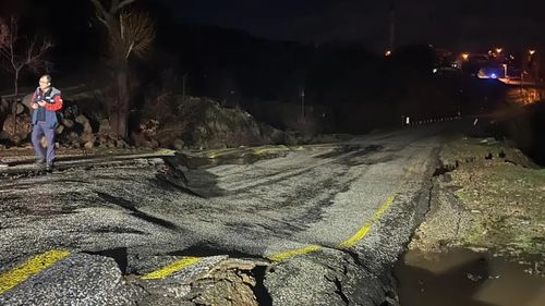 Uşak'ta yoğun yağış sonrası Aşağı Karacahisar köyü yakınında köy yolu çöktü; AFAD, jandarma ve İl Özel İdaresi ekipleri sevk edildi, yol trafiğe kapatıldı.