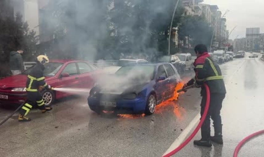 Edinilen bilgilere göre, İ.S. (31) idaresindeki 06 MTP 58 plakalı otomobil, seyir halindeyken henüz bilinmeyen bir nedenle motor kısmından alev aldı.