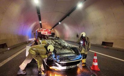 Üsküdar'da Tantavi Tüneli'nde, Kısıklı-Ümraniye istikametinde yağışlı havanın etkisiyle meydana gelen trafik kazasında bir otomobil takla attı.