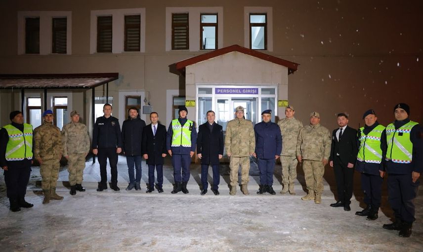 Bayburt Valisi Mustafa Eldivan, 2025 yılının son saatlerinde İl Jandarma Komutanlığı ile Jandarma Yol Kontrol ve Trafik Uygulama noktalarında görevli ekipleri ziyaret ederek yeni yıl dileklerini iletti.