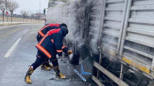 Van Edremit'te Seyir Halindeki Tırın Lastikleri Yandı — İtfaiye Müdahalesi