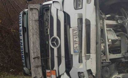 KIRKLARELİ’NİN VİZE İLÇESİNE BAĞLI SOĞUCAK KÖYÜ YAKINLARINDA SEYİR HALİNDEKİ PETROL TANKERİ DEVRİLDİ. KAZADA TANKER İÇERİSİNDEKİ MAZOT YOLA AKARKEN, HERHANGİ BİR YARALANMA YAŞANMADI.