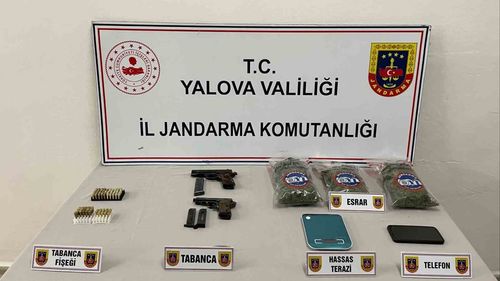 Çınarcık Esenköy'de jandarma operasyonunda 320 gram esrar ve silahlar ele geçirildi; gözaltına alınan E.Ö. adli makamlarca tutuklandı.